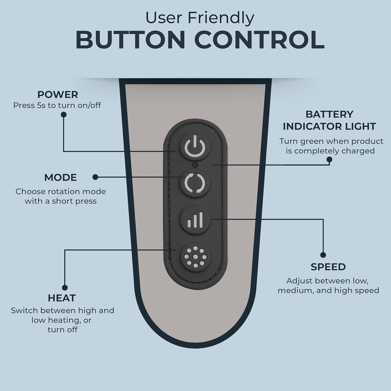 Switch between high, low, or off heat settings to target muscle tension with soothing warmth at 37-45 degrees Celsius